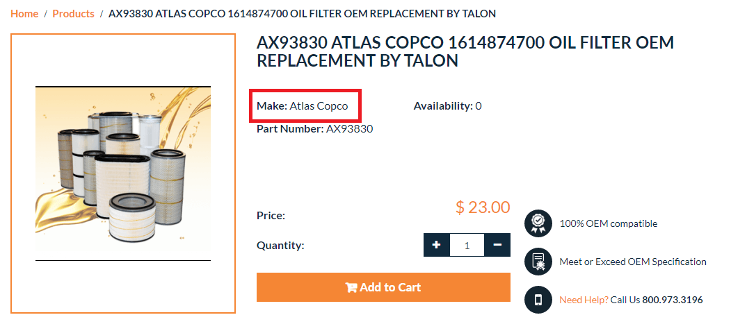 We use the words "Make" and "Replaces" to indicate if a product is Genuine OEM or Replacement(Aftermarket)